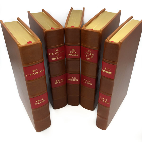 Bound in traditional style in fine leather, each volume is top-edge gilt in gold, with the book title and author foil-blocked onto coloured labels, which are then affixed to the spine. We pride in the detail, and match the top and tail bands and ribbon.